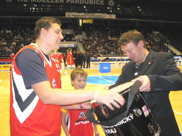 Hejtman Ivo Toman byl včera čestným hostem úvodního utkání nové sezony Marttoni Národní basketbalové ligy mezi domácími Pardubicemi a Děčínem. Při té příležitosti daroval buben fan clubu pardubických basketbalistů a ujal se i vhození míče při zahajovacím rozskoku.